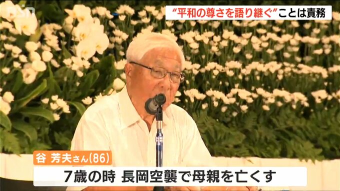 およそ1500人が犠牲となった長岡空襲から8月1日で78年です。世界各地で今も争いが続く中、長岡市で開かれた式典で出席者は平和への誓いを強くしました。