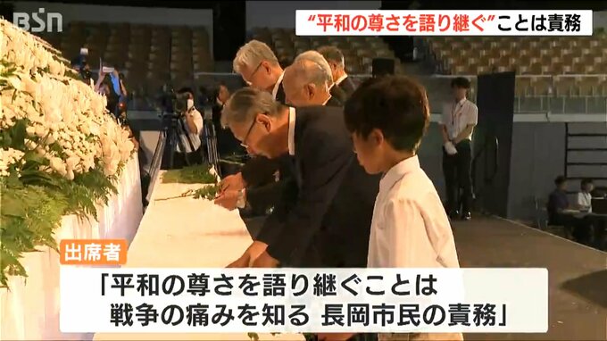 出席者は、「平和の尊さを語り継ぐことは戦争の痛みを知る長岡市民の責務だ」と改めて気持ちを一つにしていました。