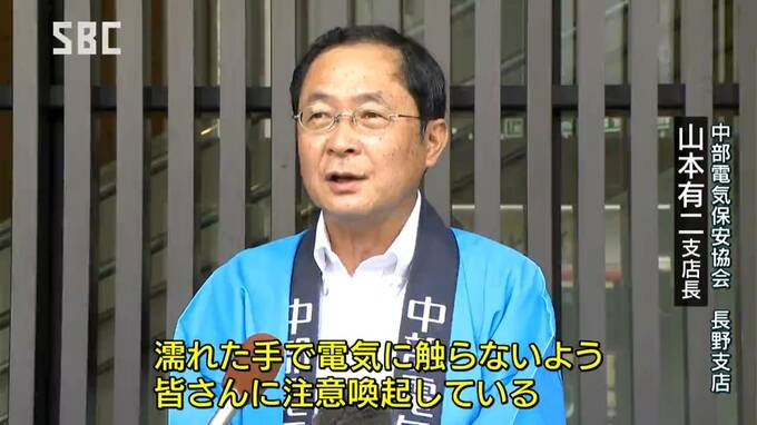 ■中部電気保安協会長野支店・山本有二支店長                                  「濡れた手で電気に触らないなど皆さんに注意喚起させていただいている」