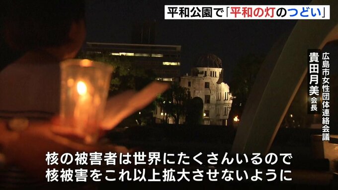 平和公園(広島市)で7月31日夜、核廃絶を願う人たちが集まり、「ヒロシマ平和の灯のつどい」が開かれました。