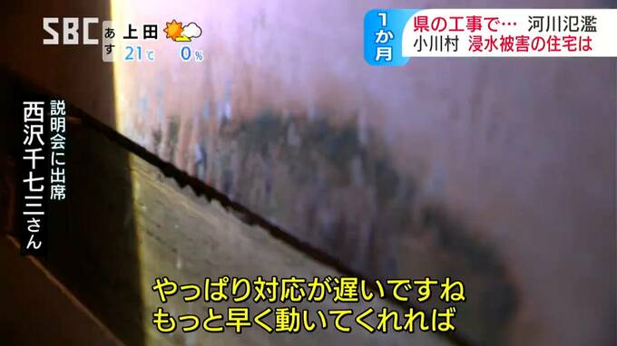 長野県が行った河川工事が原因とみられる小川村の住宅浸水からきょうで1か月。