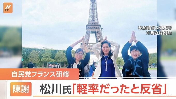 「まるで観光旅行だ」などと物議を醸している自民党女性局のフランス研修。きょう、写真をSNSに投稿した参議院議員の松川るい女性局長が取材に応じ、「大変軽率だったと反省している」と陳謝しました。フランス研…