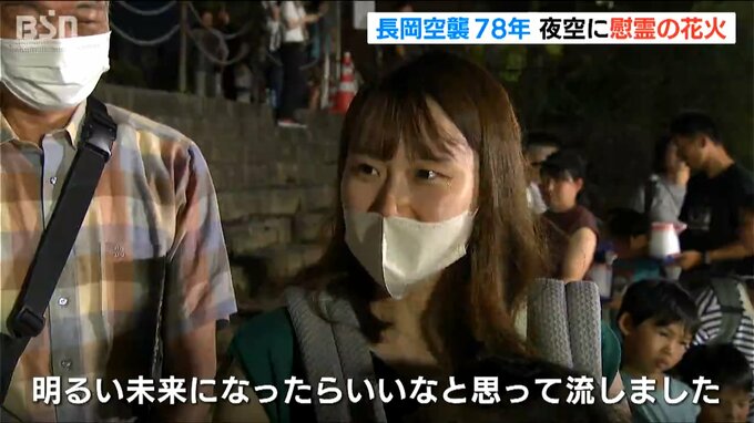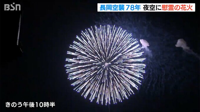 長岡空襲から78年となった1日、長岡市では慰霊の花火「白菊」の打ち上げと灯篭流しが行われ、平和への祈りが捧げられました。