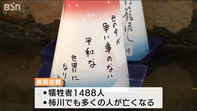 長岡市の柿川では小中学生や長岡市の磯田達伸 市長らが出席し、灯篭流しが行われました。