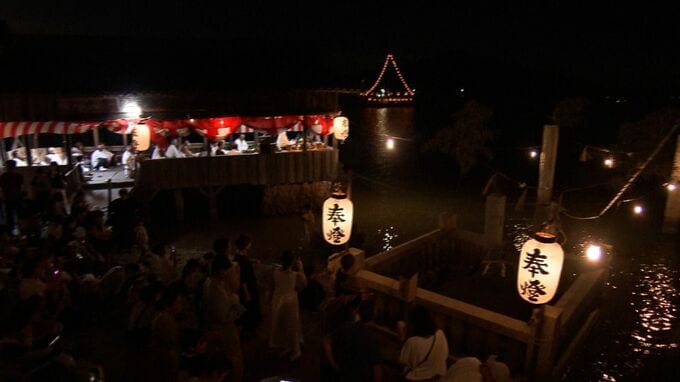 岡山市東区に、「潮が満ちると海に浸かる珍しい神社」があります。亀の姿に見える石を祀った「亀岩神社」です。きのう8月1日に、夏祭りが開かれました。囃子を演奏しながら巡航する船も出て、海には幻想的な光景が広がりました。