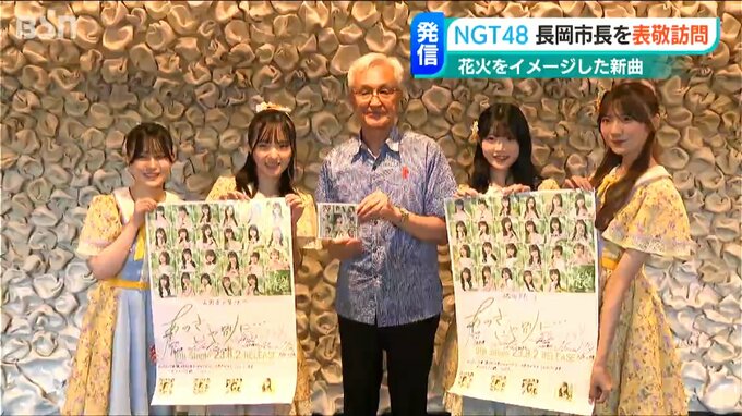 花火をイメージした新曲を発表したNGT48のメンバーが、長岡市の磯田 市長を表敬訪問し「慰霊や平和への思いを発信したい」と意気込みました。1日、長岡市の磯田 市長を訪ねたNGT48のメンバー4人は、2日に発売され…