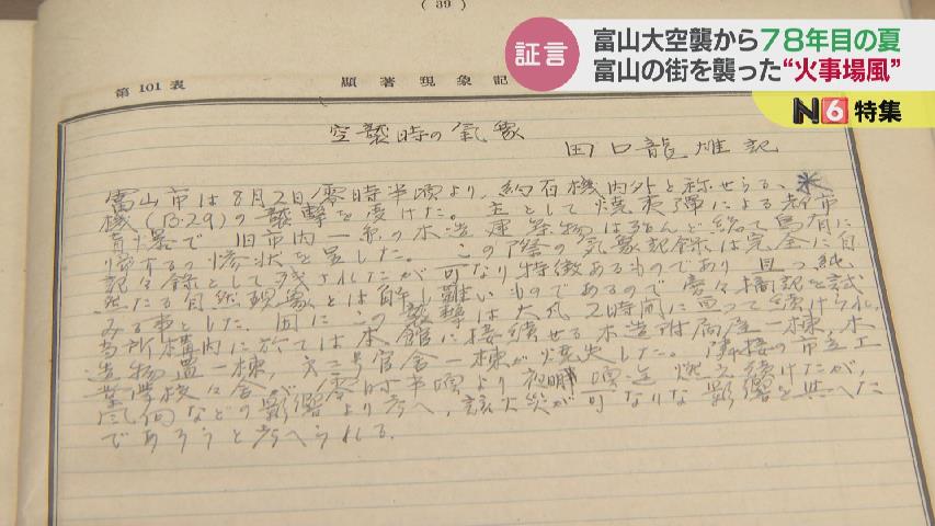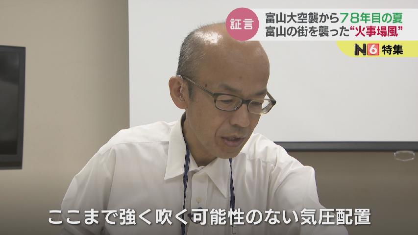 富山地方気象台気象情報官 大江幸治さん:「参考資料がありましてですね。それによりますと、当時の気圧配置から見ると、ここまで強く風が吹く可能性の気圧配置ではないです。そのような気圧配置ではなかった。空襲があって、火災があったと聞いているので、どの程度であったかはわかりませんけども、その影響でここまで風が強まったと考えられます」