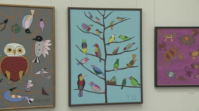 大きなキャンバスに描かれたふくろうの絵。独特な色合いで細部まで描き込まれています。(来場者)「細かくて色使いも好きでした」「色使いが明るくて見ていると楽しい気分になります」作者は宇平康之さん67歳。宇…