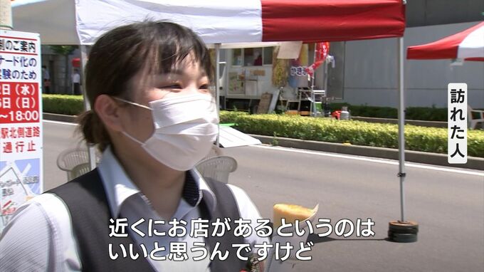 きょう(2日)の社会実験では、この区間にキッチンカーが並び、会社員らが昼休みのひとときを楽しんでいました。