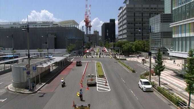(茅原淳記者)「今回はさらにアリーナ周辺の4車線道路を2車線にして交通への影響を調べます」