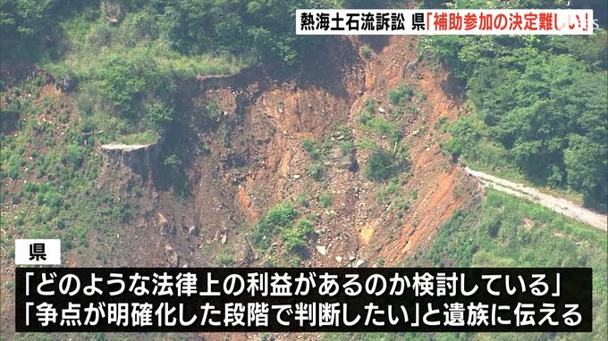 静岡県熱海市の土石流災害の損害賠償請求訴訟をめぐり、裁判への「補助参加」を求められている県が、遺族側に「現時点での決定は難しい」と伝えたことがわかりました。 2021年7月、熱海市で起きた土石流災害をめ…