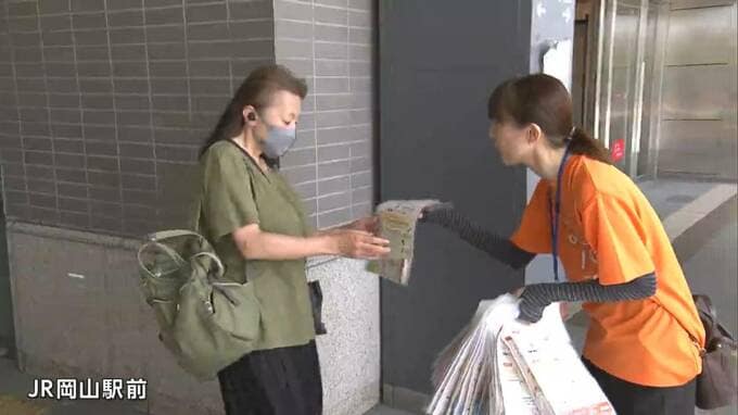 JR岡山駅前で、岡山市の職員らが市民にチラシを配っていきました。