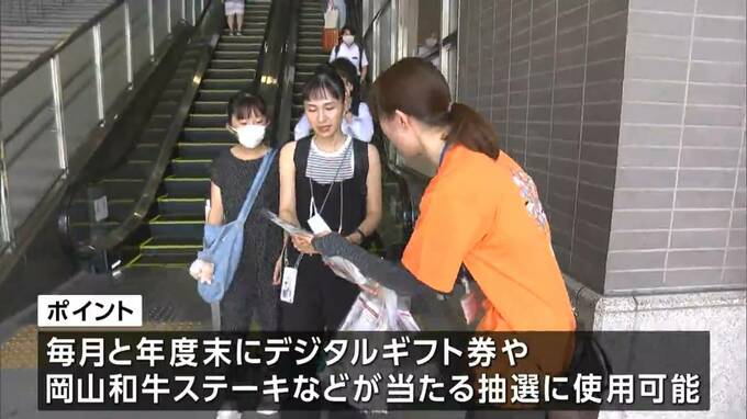 ポイントは、毎月・年度末にデジタルギフト券や岡山和牛ステーキなどが当たる抽選に使えるということです。