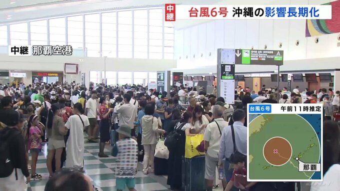 今週はじめから、台風6号が接近している沖縄地方ですが、現在も、宮古島では、全域が暴風域に入っていて、影響は、長期化しています。那覇空港では午後から、一部の便で運航が再開される予定です。那覇空港の出発…
