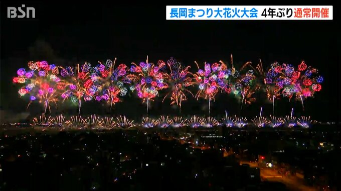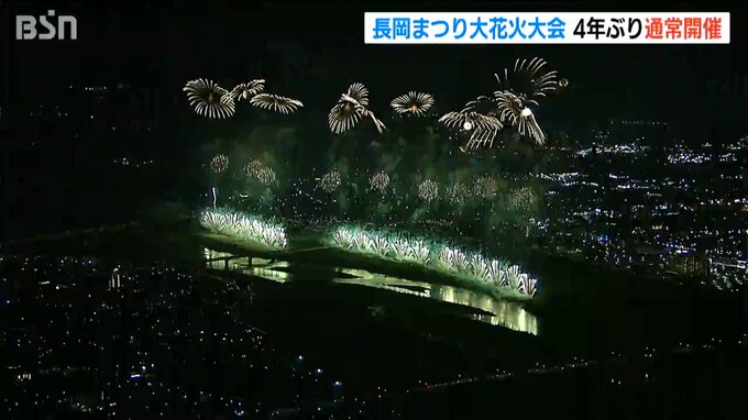 日本三大花火のひとつ『長岡まつり大花火大会』が2日、4年ぶりに通常開催され、訪れた人たちが迫力の花火に酔いしれました。