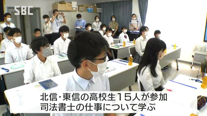 今年は北信と東信の高校生15人が「一日司法書士」に任命され、相続登記や法人化の手続きなど、司法書士の仕事について学んだほか、司法書士事務所や法務局、裁判所などを見学しました。