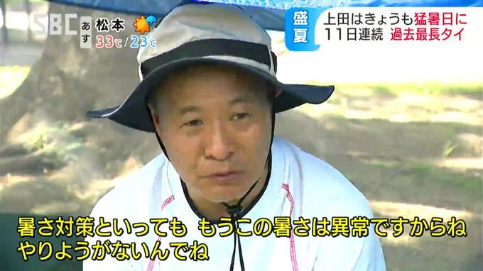 上田市では過去最長に並ぶ11日連続で、最高気温が35度以上の猛暑日を記録しました。