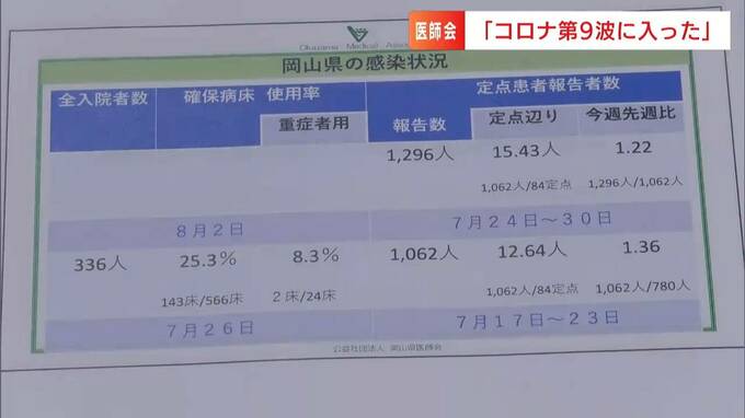 岡山県医師会は、新型コロナウイルスの流行が第9波に入ったとみて、「県民に引き続きの感染対策を」と呼びかけました。