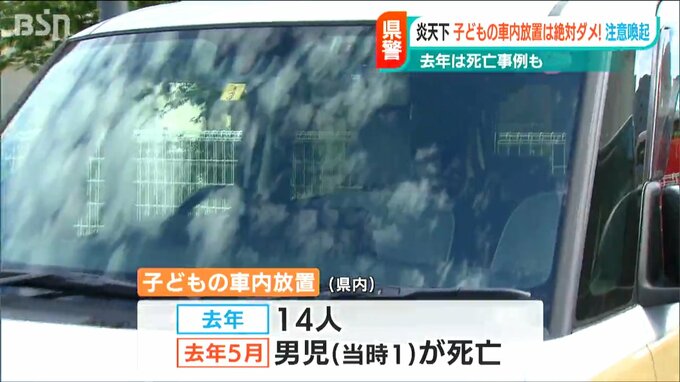 新潟県警によりますと、新潟県内の児童相談所へ寄せられた子どもの車内放置の報告数は去年14人で、去年5月には1歳の男の子が車の中に置き去りになり死亡しています。