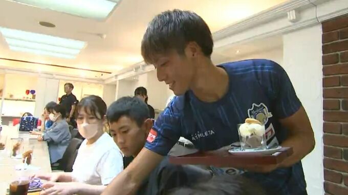 選手はカフェで飲み物を配膳したり、かき氷を作ったりするなどして、訪れた人とふれあいました。