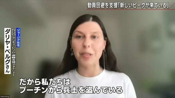 「第一の犠牲者はウクライナ国民で、この戦争を止めさせるために出来る限りのことをやらねばならない。(動員を妨害し)プーチンの兵士が少なくなるほど戦争の継続が難しくなると私は考える。私たちがしていることはプーチンから兵士を盗んでいるの…」