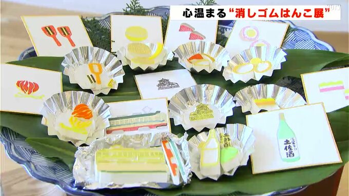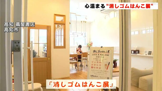 8月5日の「はんこの日」を前に心温まるメッセージなどが彫られた作品が並ぶ「消しゴムはんこ展」が高知市の高知蔦屋書店で開かれています。