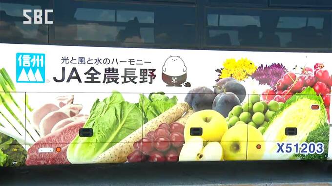 信州の特産を首都圏でアピールしようと、農畜産物の写真でラッピングされた高速バスの運行が始まりました。