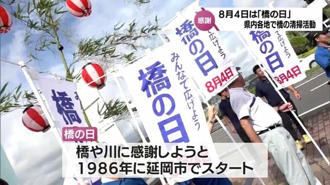 8月4日は「橋の日」です。日頃から利用している橋に感謝の気持ちを込めて、宮崎県内各地で橋の清掃活動が行われました。「橋の日」は、橋や川に感謝しようと1986年に延岡市でスタートしたもので、現在では全国で記…
