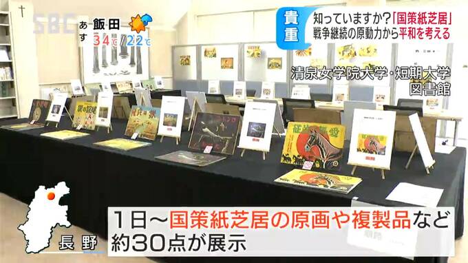 長野市の清泉女学院大学・短期大学には、8月1日から国策紙芝居の原画や複製品など、およそ30点が展示されています。