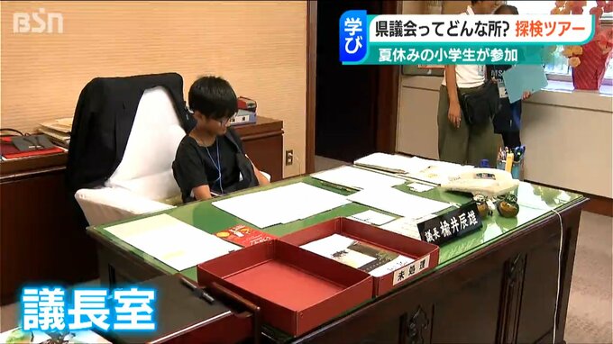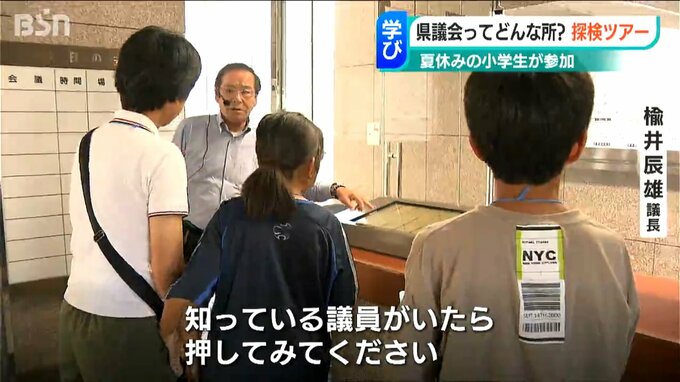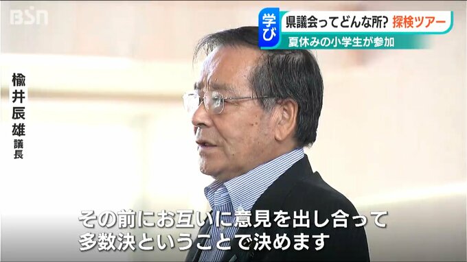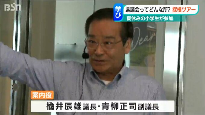 夏休み中の子どもたちに県議会の仕事について理解を深めてもらおうと見学ツアーが開かれました。案内役は新潟県議会の議長と副議長です。