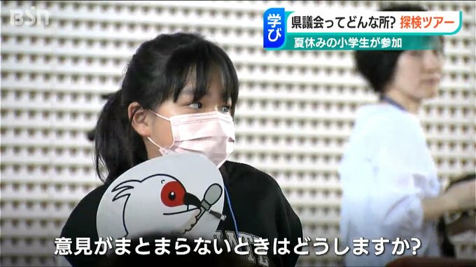 県内の小学校に通う4年生から6年生とその保護者、26人が参加して行われた「県議会探検ツアー」です。