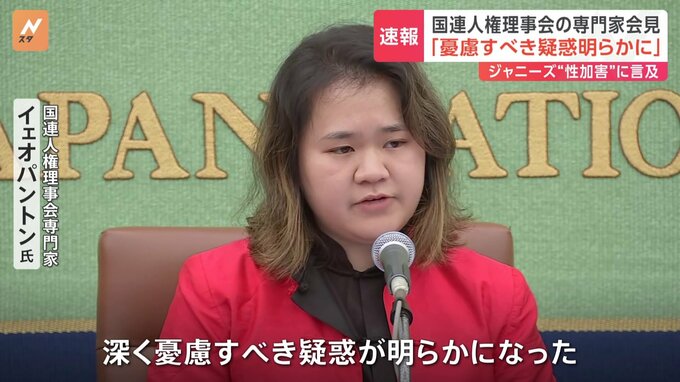ジャニー喜多川氏による性加害を複数の元所属タレントが訴えている問題で、当事者に聞き取りをした国連の人権理事会の専門家がさきほど会見を開き、「数百人が性的搾取と虐待に巻き込まれる憂慮すべき疑惑が明らか…