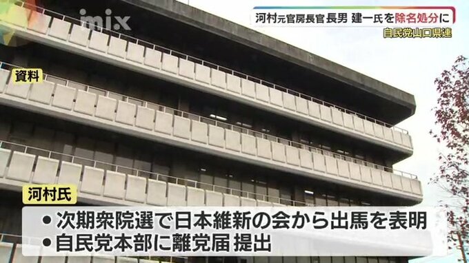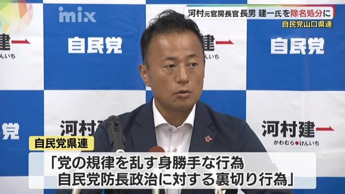 自民党山口県連は、次期衆院選に日本維新の会から出馬を予定する河村建夫元官房長官の長男・河村建一さんを除名処分にしました。