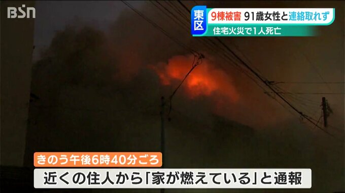 また、この火事の後、火元の家に1人で住んでいる91歳の女性と連絡が取れていません。