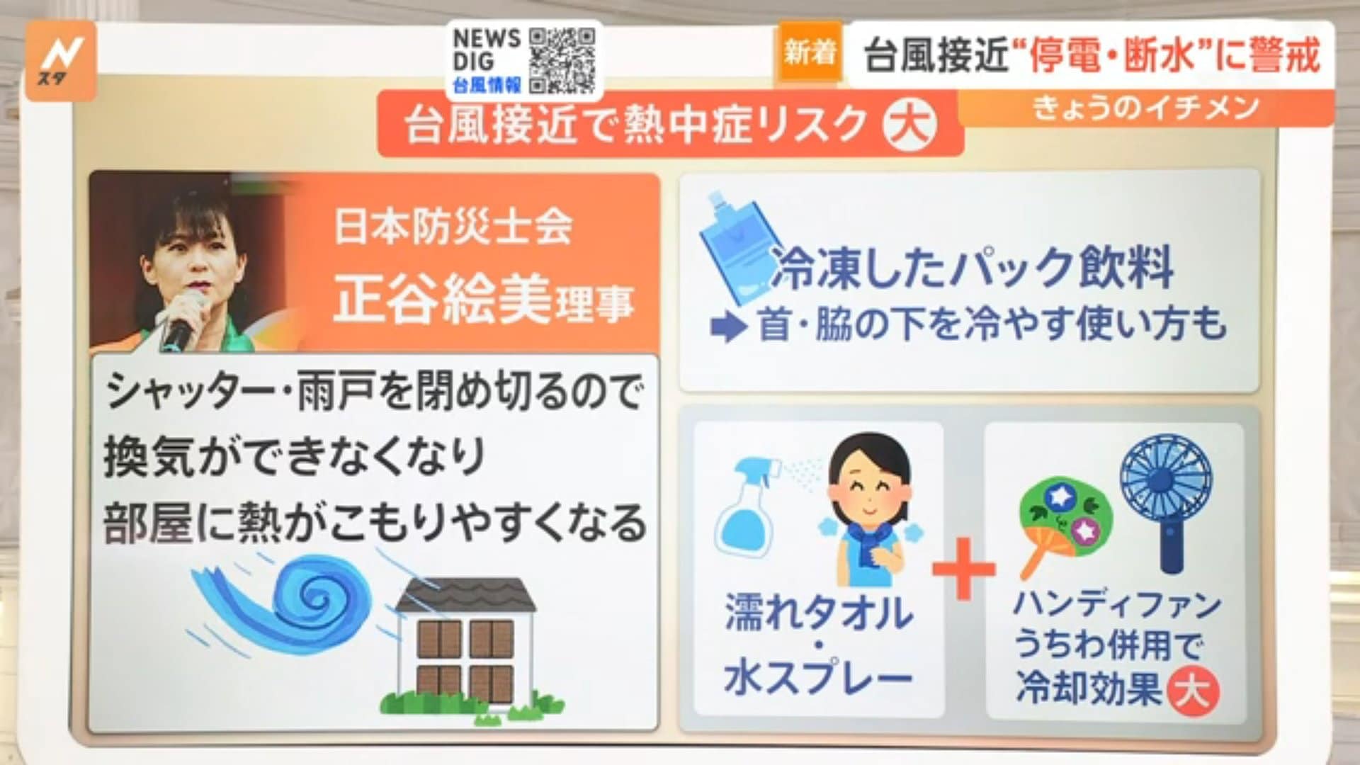 日本防災士会 正谷絵美理事「シャッター・雨戸を閉め切るので換気ができなくなり部屋に熱がこもりやすくなる」