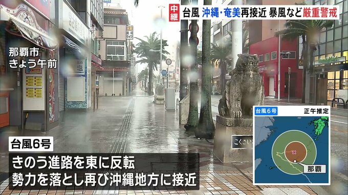 台風6号はやや勢力を落として東よりに進み、沖縄地方や奄美地方に再び接近しています。那覇市から中継です。台風6号、この時間、那覇には最も近づいています。風はゴーゴーと音を立てて吹いていて、雨が激しく降っ…