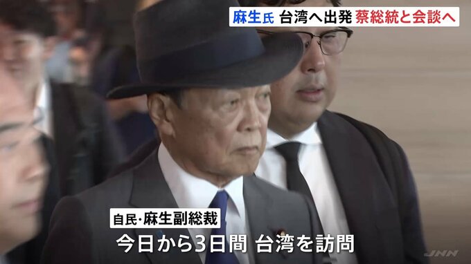 自民党の麻生副総裁が台湾に向けて出発しました。あす、蔡英文総統らと会談する予定です。自民党の麻生副総裁は、きょうから3日間の日程で台湾を訪問し、あす、蔡英文総統や、来年1月の総統選に与党・民進党から立…