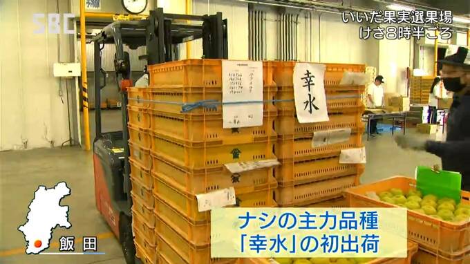 飯田下伊那地域で、ナシの主力品種「幸水(こうすい)」の出荷が始まりました。