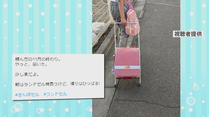 そんな問題を解決しようと開発されたのが…『さんぽセル』!ランドセルに取っ手や車輪をつけ、キャリーバックのようにすることで、体感で重さが9割ほど軽減されるというものです。