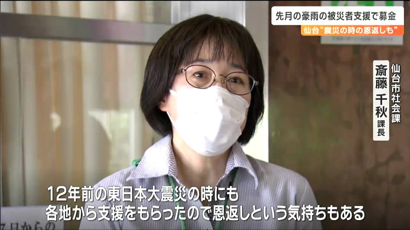 7月、秋田県などで大きな被害を出した豪雨で、被災した人たちの生活を支援しようと、仙台市は、7日から市役所などに募金箱を設置し、市民に協力を呼びかけています。