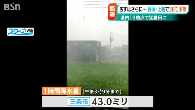 一方、県内は大気の状態が非常に不安定になり三条市では午後3時までの一時間に43ミリの激しい雨が降りました。