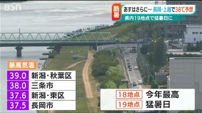 新潟県内は8日、最高気温が長岡市と上越市高田で38℃、新潟市中央区で37℃と予想されており、今年一番の暑さになるかもしれません。