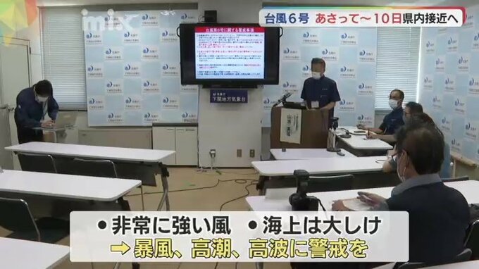 台風6号は、9日から10日にかけて北上し、予報円の中心付近を進んだ場合、県内には10日の明け方から朝にかけて最も接近する見込みです。