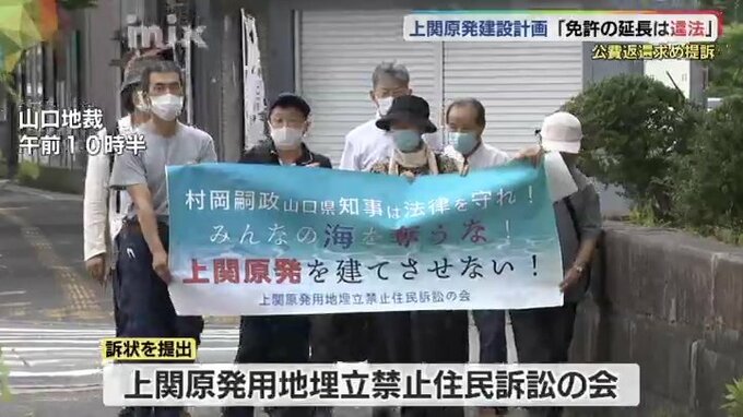 山口県上関町の原発建設計画に反対する団体が県が海の埋め立て免許延長を許可したことは違法、として県を相手取り、村岡山口県知事にかかった費用を請求するよう求める訴えを起こしました。「上関原発用地埋立禁止…