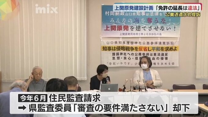 山口県上関町の原発建設計画に反対する団体が県が海の埋め立て免許延長を許可したことは違法、として県を相手取り、村岡山口県知事にかかった費用を請求するよう求める訴えを起こしました。