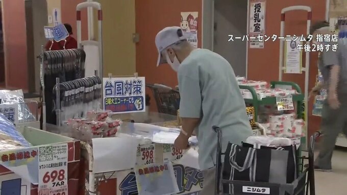 店側は、強い風でガラスが割れないように養生するためのテープや、停電の際に使えるラジオなどを数多く揃えたそうです。