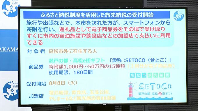 観光振興などに活かそうと、香川県高松市はふるさと納税制度を活用し、観光客らが旅先で納税すれば返礼品としてその場で電子商品券が受け取れる取り組みを始めます。