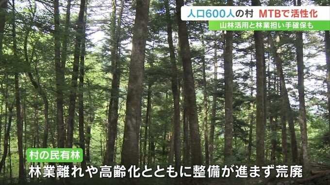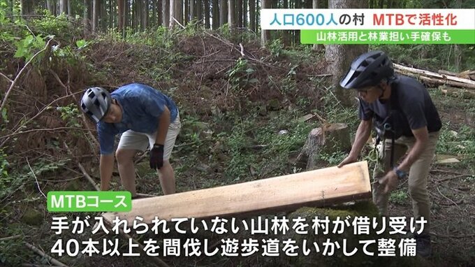 今回整備したコースは手が入れられていなかった山林を村が所有者から借り受けてヒノキやモミの木など40本以上を間伐し、遊歩道だった場所をいかしながら整備したということです。