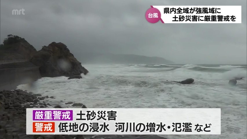 県内では、土砂災害に厳重警戒、低い土地の浸水や河川の増水・氾濫、それに、うねりを伴った高波に警戒が必要です。