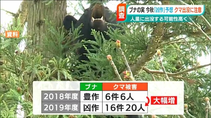 実際に2018年度、ブナは「豊作」でしたが、翌2019年度は「凶作」となり、クマによる被害は16件20人と大幅に増えました。